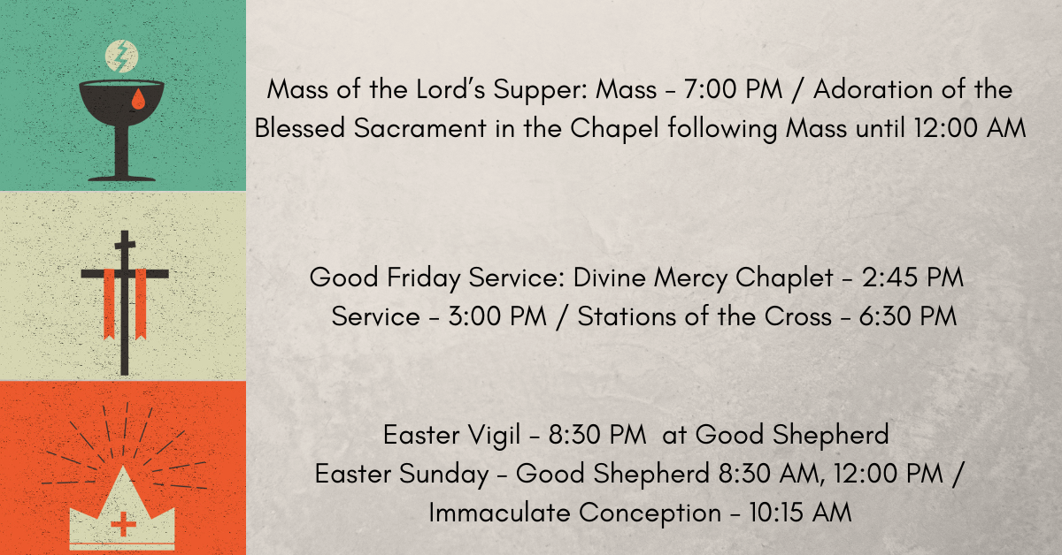 Good Shepherd Mon. & Wed. - Fri. 11:30 AM Sat. 5:30 PM (Vigil Mass)